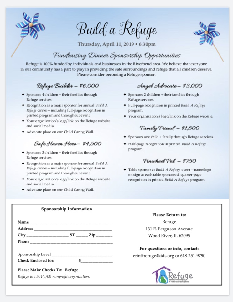They are looking for sponsors, please click here for all of the details. If you have any questions, email: erin@refuge4kids.org